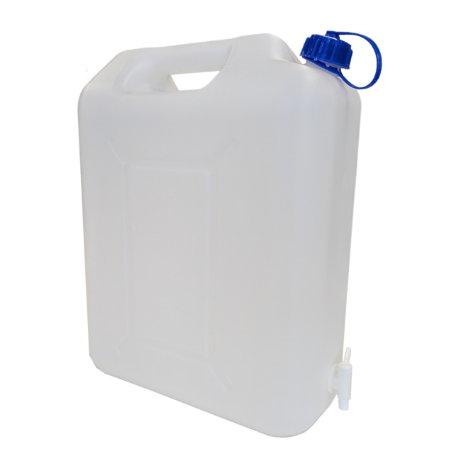 Price shown is per unit. Lightweight Plastic Water Container 20 litre. This 20 Litre Plastic Water Container comes complete with a handy tap. The container has a wide range of uses and is ideal for carrying water whilst camping/caravanning etc.
